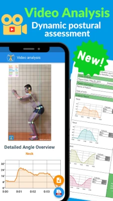 Appen utstyrer deg med et bredt spekter av funksjoner for både statisk og dynamisk holdningsanalyse. Utfør detaljerte målinger fra alle vinkler – foran, bak, venstre og høyre side – inkludert spesifikke tester for fremoverbøyd hode, skuldre og rygg (Adam's fremoverbøyetest). Med APECS kan du vurdere bevegelsesutslag (ROM), kneavvik som valgus/varus, og analysere kroppens symmetri med avanserte indekser som ATSI og POTSI. Videoanalyse av lateral holdning med automatisk sporing og grønn markørgjenkjenning gir dypere forståelse av bevegelsesmønstre. Appen integrerer også et goniometer for å måle spesifikke vinkler, ideelt for forskere og avanserte brukere som ønsker å skreddersy egne undersøkelser.
