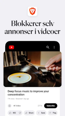 Brave er designet for en sømløs brukeropplevelse. Fra raske søk og enkel tilgang til nylige faner og historikk, til sikker synkronisering av bokmerker på tvers av enheter, er hver funksjon optimalisert for effektivitet. Bak den intuitive funksjonaliteten ligger Braves engasjement for et bedre internett. Ved å fremme en trygg, rask og privat nettlesing, arbeider Brave for å transformere det digitale annonseøkosystemet, og skape en mer rettferdig balanse for både brukere og innholdsskapere. Oppdag hvordan Brave redefinerer din digitale verden med uovertruffen sikkerhet og hastighet.