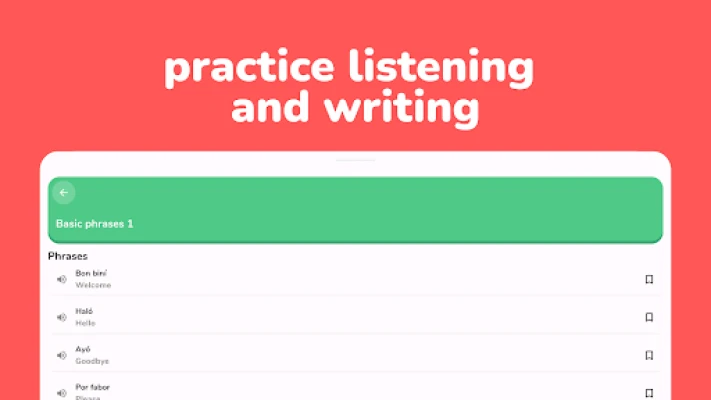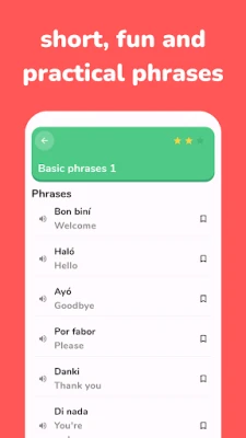 Papiamentu er et særpreget kreolspråk som binder sammen øyene Bonaire og Curaçao, og å lære det er nøkkelen til å låse opp en levende kultur og berike dine lokale opplevelser på en langt dypere måte. Med Learn Papiamentu får du tilgang til essensielle verktøy som tar læringen din til neste nivå. Utforsk et omfattende bibliotek av praktisk ordforråd og fraser, spesielt utvalgt for typiske situasjoner som reise, hilsener, handling og mye mer. Hvert ord er innspilt av morsmålsbrukere, slik at du mestrer autentisk uttale fra første stund.