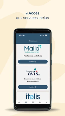 I tillegg til kjernefunksjonene får du tilgang til et bredt spekter av eksklusive ekstratjenester. Dra nytte av e-helseplattformen Maiia for praktiske digitale konsultasjoner, eller få en uvurderlig andrevurdering av dine medisinske diagnoser gjennom deuxiemeavis.fr. Trenger du å finne en spesialisert helseprofesjonell? Vår geolokaliseringstjeneste hjelper deg med å lokalisere partnere i Itelis-nettverket. Videre får du tilgang til den omfattende katalogen over Service de Soins et d'Accompagnement Mutualistes fra Pavillon de la Mutualité. Hold deg oppdatert med de siste nyhetene og viktig informasjon fra din forsikringspartner direkte i appen, og sikre at du aldri går glipp av vesentlige oppdateringer.