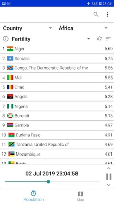 Alle data presenteres med største nøyaktighet og er utelukkende hentet fra den anerkjente "World Population Prospects" fra De forente nasjoner (FN) 2019. Dette sikrer at du får tilgang til pålitelig og oppdatert informasjon for dine analyser. Med støtte for alle verdens land – fra gigantene som Kina og India, til de store nasjonene i Amerika og Europa, og alle land i Afrika og Oseania – gir appen et komplett globalt perspektiv. Denne ressursen er uunnværlig for alle som ønsker å forstå de kreftene som former vår felles fremtid.