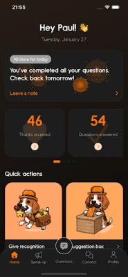 Hver dag vil Wotter stille deg engasjerende spørsmål knyttet til din rolle, selskapets kultur, og din generelle trivsel. Dette er ikke bare rutinemessige undersøkelser; det er din mulighet til å gi direkte tilbakemelding på det som virkelig betyr noe. Det viktigste aspektet? Dine innspill er 100% anonyme. Vi har bygget Wotter med personvern i kjernen, slik at du kan uttrykke deg fritt og uforbeholdent, uten frykt for identifisering.